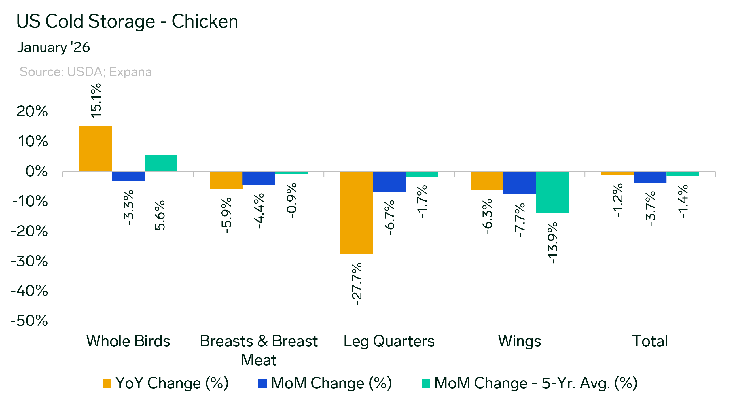 ANALYSIS: January Chicken Cold Storage Highlights Robust Demand Across Major Categories