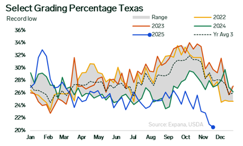 ANALYSIS: Texas 2025 Beef Quality Surges as Select Supplies Collapse to Record Lows