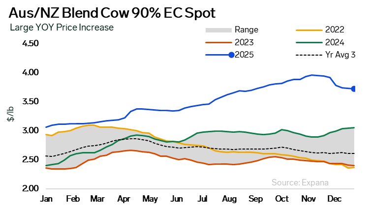 ANALYSIS: US Imported Beef Prices Increased 22% YOY on Average in 2025