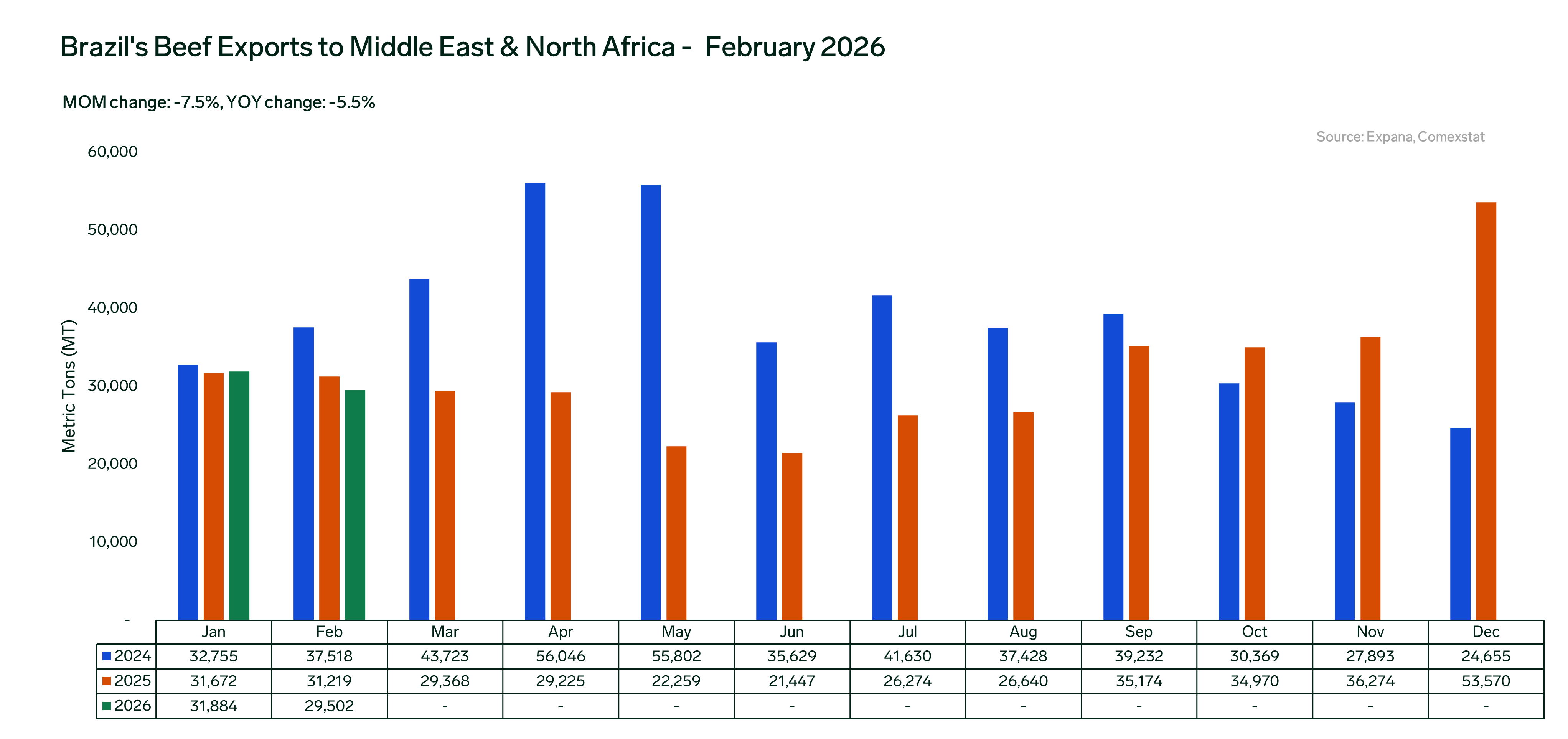 ANALYSIS: Brazil Beef Exports Remained Resilient in February 2026 Despite Middle East Conflicts