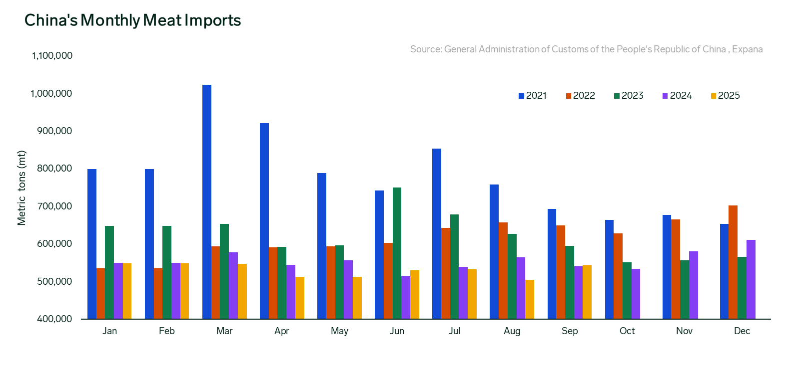 ANALYSIS: China’s Q3 2025 Meat Imports Tumble 3.9% YOY at 1.58M mt Amid Subdued Uptake