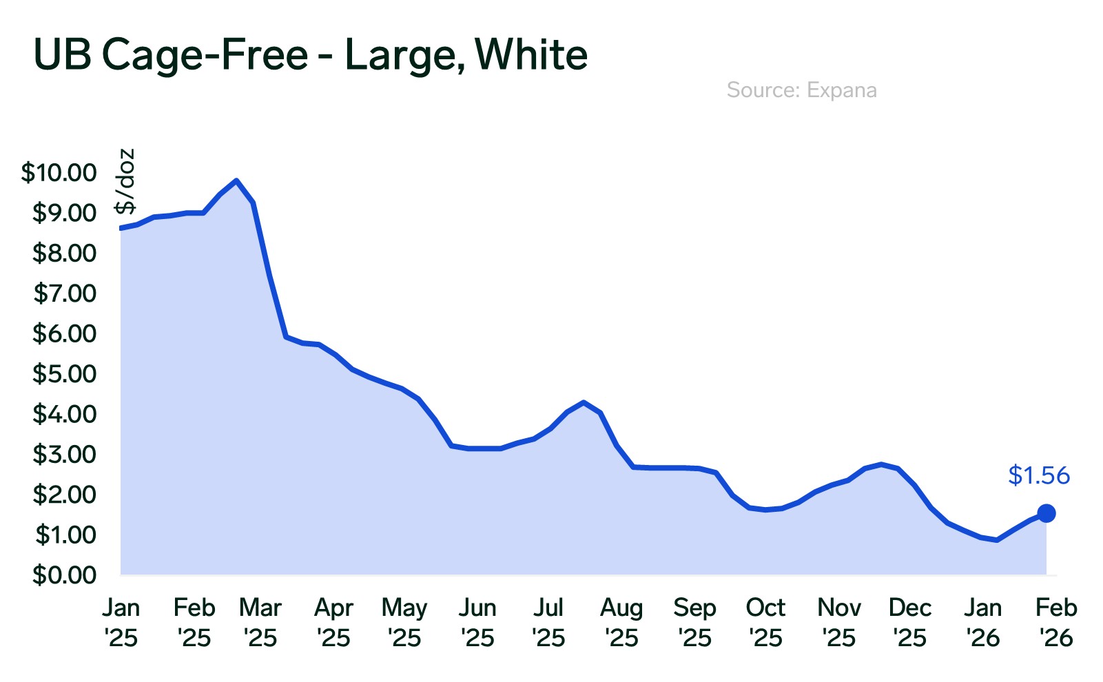 Following recent gains in cage-free quotations across both the rest-of-market and West Coast regions, market momentum has slowed sharply, pushing the category into a clear testing phase. With aggressive promotional activity scaling back and retail engagement softening, buying interest has lost much of its earlier urgency. At the same time, a supply environment that remains fluid has added to uncertainty, leaving many participants describing sentiment as unsettled and directionally unclear.