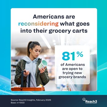 Reach3 Insights has released a study, Rethinking Routine: What's Really Happening in the Grocery Aisle, revealing that 81% of Americans are open to trying new grocery brands. This research indicates a shift from sticking with familiar brands to more thoughtful brand comparison, research, and evaluation.