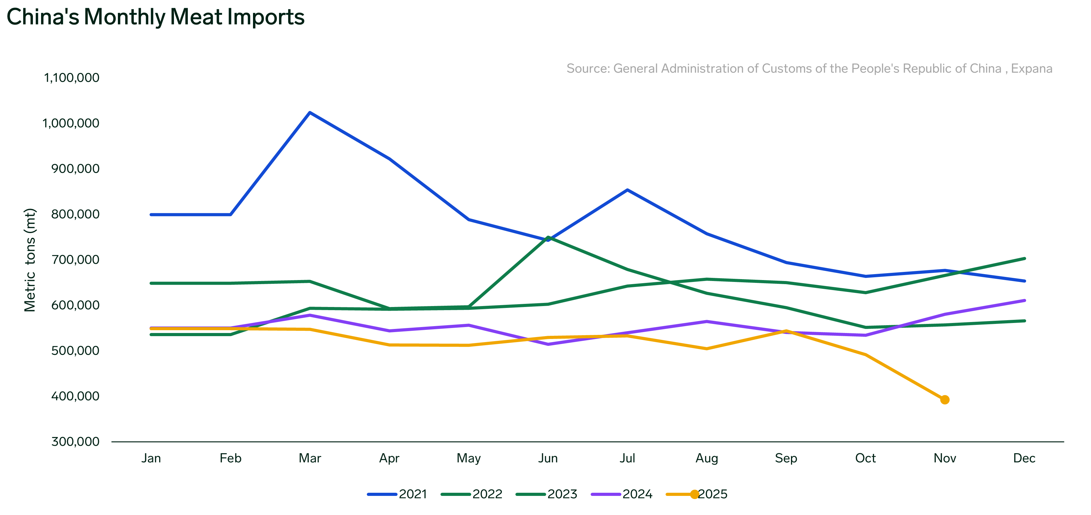 ANALYSIS: China’s Nov 2025 Meat Imports Nosedive 20.2% MOM as Customs Scrutiny Intensifies