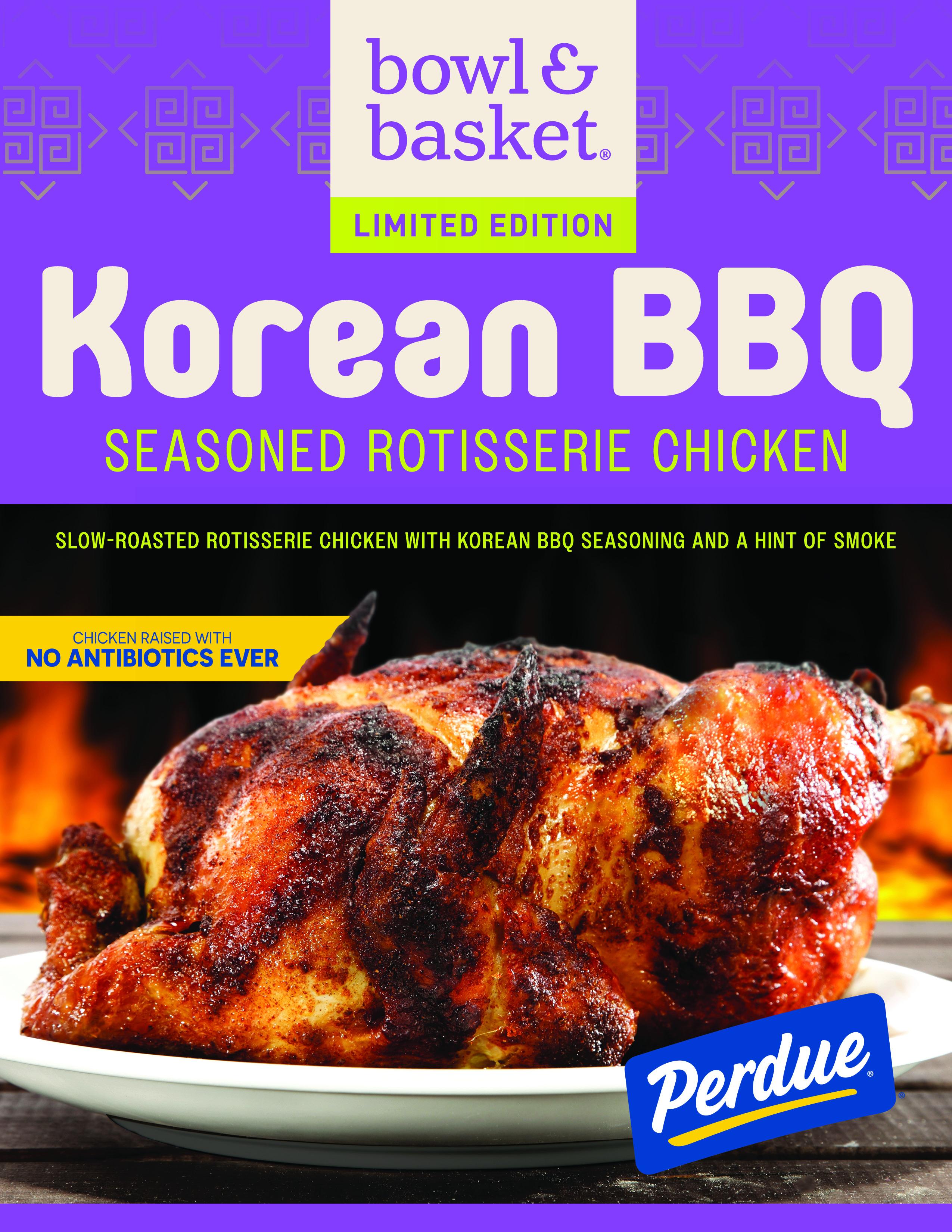 Part of the co-branded Bowl & Basket™ and PERDUE® prepared foods lineup, the ready-to-eat offering combines the familiar comfort of rotisserie chicken with sweet and savory Korean BBQ flavor — giving shoppers an easy way to bring variety to weeknight meals without extra prep.