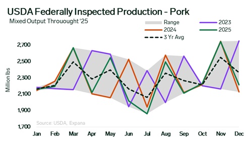ANALYSIS:2025 Pork Production Trends Reflect Softer Output Versus 2024