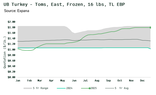 ANALYSIS: Frozen Whole Toms Rise From Five-Year Low to Near-Record Highs in 2025